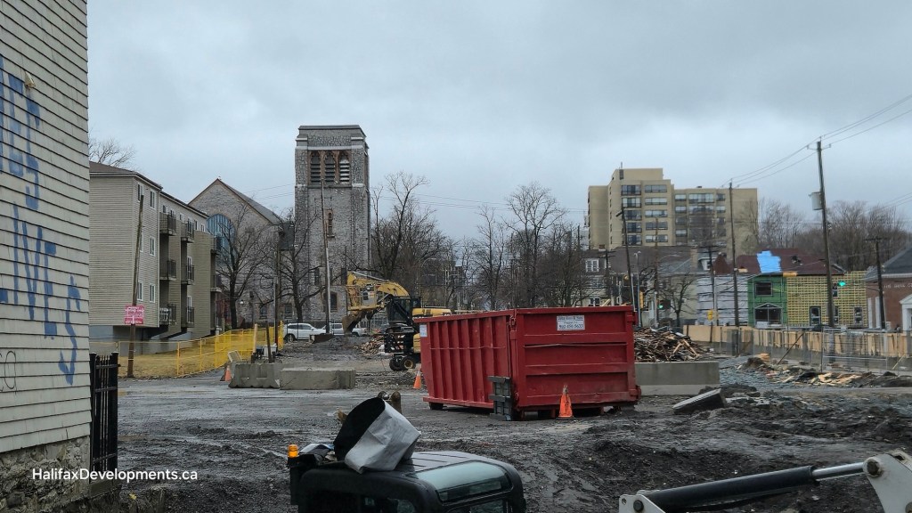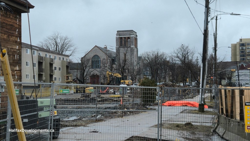 Construction barriers have gone up closing off the sidewalk. Excavation work has begun.